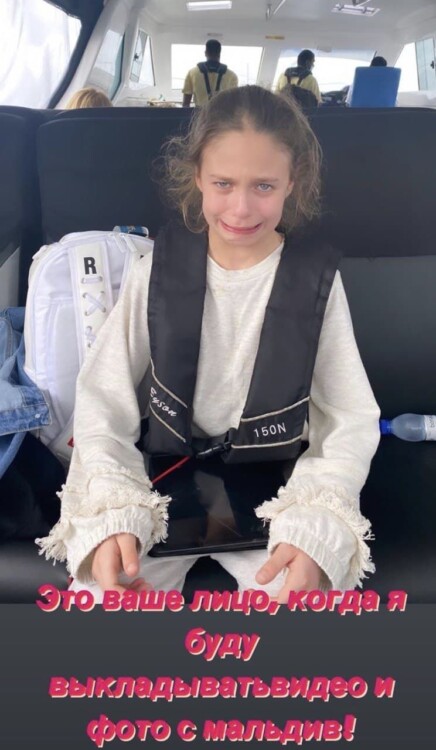 Також співачка опублікувала світлини своєї меншої донечки. На одному із фото в неї заплакане обличчя та поганий настрій. Під ним Оля Полякова написала, що саме так відреагують її підписники, коли артистка буде хизуватись відпочинком на Мальдівах.
