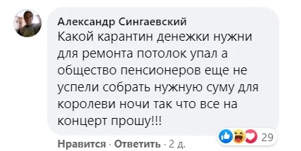 13 березня артистка співала в Сумах. На її концерт прийшла велика кількість людей. Всі присутні перебували в захисних масках, проте, на думку деяких підписників, концерти на період карантину повинні заборонити. Незадоволені залишили у коментарях багато негативних слів.