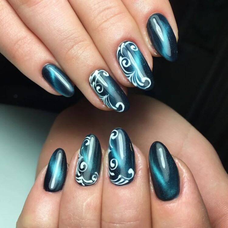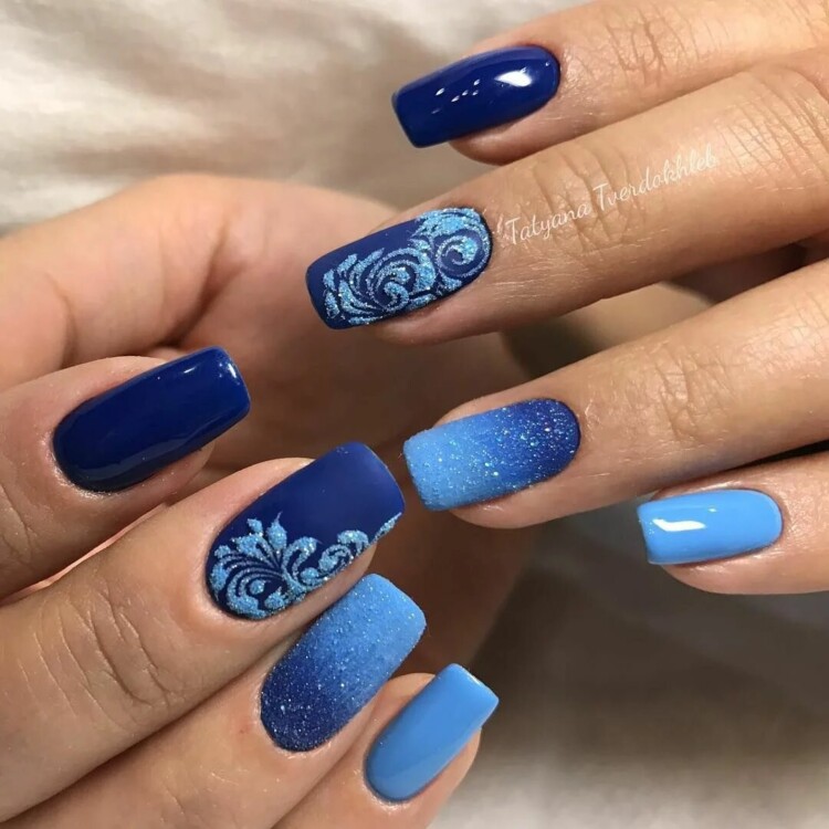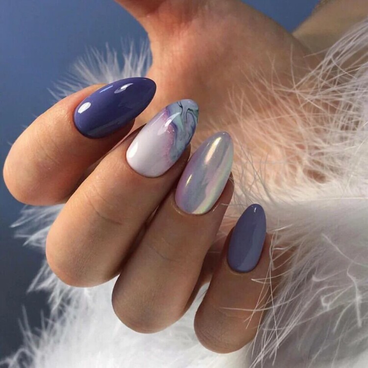 Для зимового сезону, може підібрати палітру холодних відтінків. Насичений синій колір сам по собі вже заворожує. Також можна використовувати ніжні пастельні відтінки блакитного або лавандового. Будь-який манікюр можна виконати в стилі мінімалізму. Декілька штрихів додадуть образу індивідуальності й неповторності.