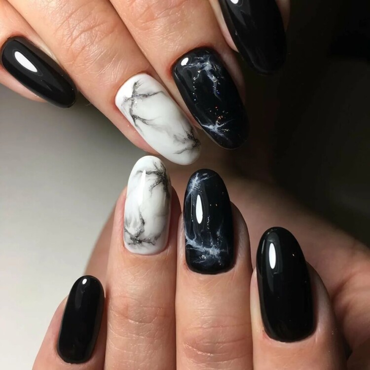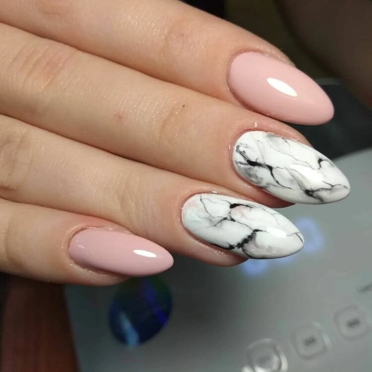 Наступного року буде користуватися попитом манікюр, виконаний під мармур. Красиві розводи можна комбінувати з яскравими насиченими відтінками. Для тематичної зими підійдуть сніжинки і різні атрибути у вигляді кумедних сніговиків і зимових пейзажів. Кожен дизайн унікальний по-своєму. Вибір тільки за вами!