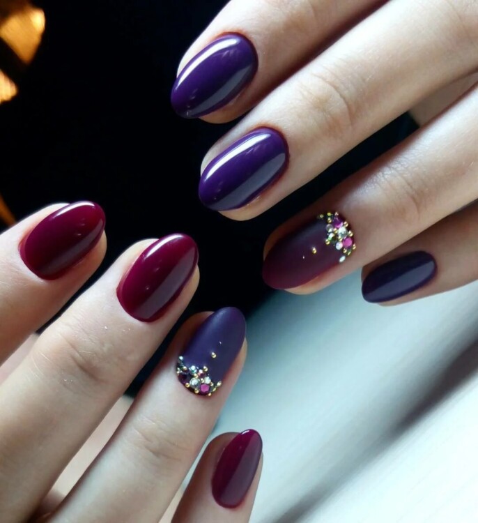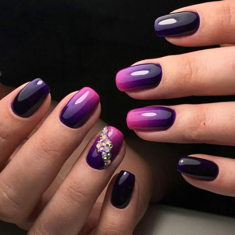 Для більш насичених і яскравих відтінків відмінно підійдуть блискітки і стрази. Також ідеальним варіантом стане градієнт. Плавний перехід від одного кольору до іншого завжди заворожує і приваблює увагу. Також можна додати техніку “Котяче око”. Сам по собі манікюр вже стане лаконічним і самодостатнім.