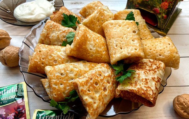 Рецепт таких млинців дуже особливий, адже серед інгредієнтів, які знадобляться, є шампанське. Завдяки алкоголю вони виходять пишними, ніжними та дуже смачними.