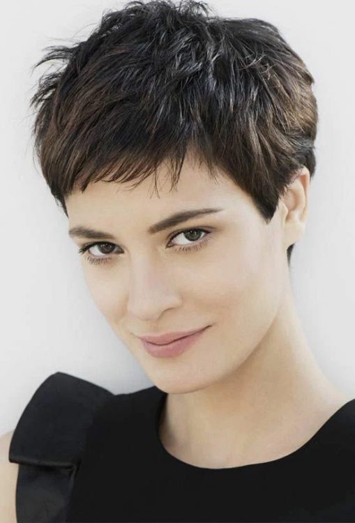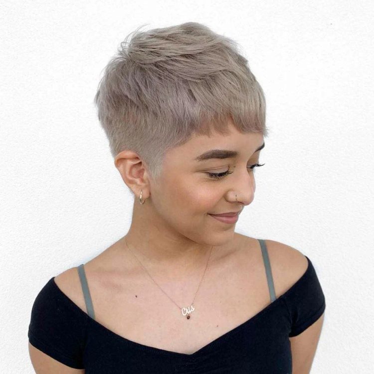 Максимально коротке волосся допоможе вам відчути себе справжньою сучасною бунтаркою. Якщо ви вже втомилися і перенаситилися різноманітними укладаннями та зачісками, які займають величезну кількість цінного часу, тоді коротка стрижка ідеально підійде вам. Зверніть увагу, наскільки ефектно ультракоротка піксі виглядає з коротким чубчиком, злегка піднятим нагору.