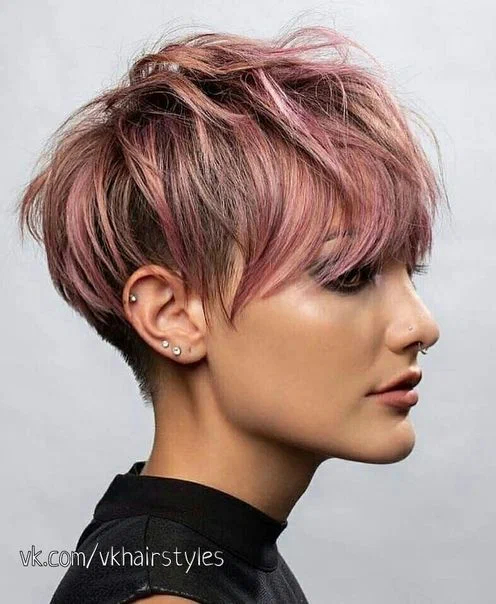 У короткій піксі є щось особливе, якась родзинка та особливий магніт, який привертає до себе увагу. Стрижка піксі включає найактуальніші критерії стильної бунтарської стрижки, а саме: коротке волосся, що стирчить на маківці, ефектні виголені скроні та потилицю. Ця модель стрижки виглядає просто чарівно з подовженим рваним чубчиком. Бунтарський образ вдало завершить яскраве фарбування, яке, до речі, також популярне в цьому сезоні.