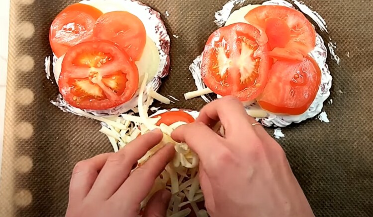 Наріжте помідор і цибулю кружечками. Спочатку викладіть кільця цибулі, потім помідори.