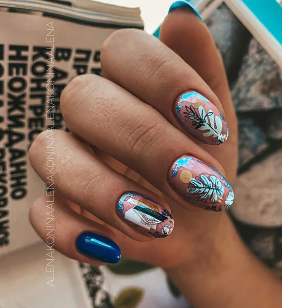 Блакитний колір гарно виглядає не тільки взимку і багато робіт професіоналів своєї справи підтверджують це – багато варіантів манікюру, виконані в блакитному / синьому кольорі – універсальні і їх можна носити в будь-якому сезоні.