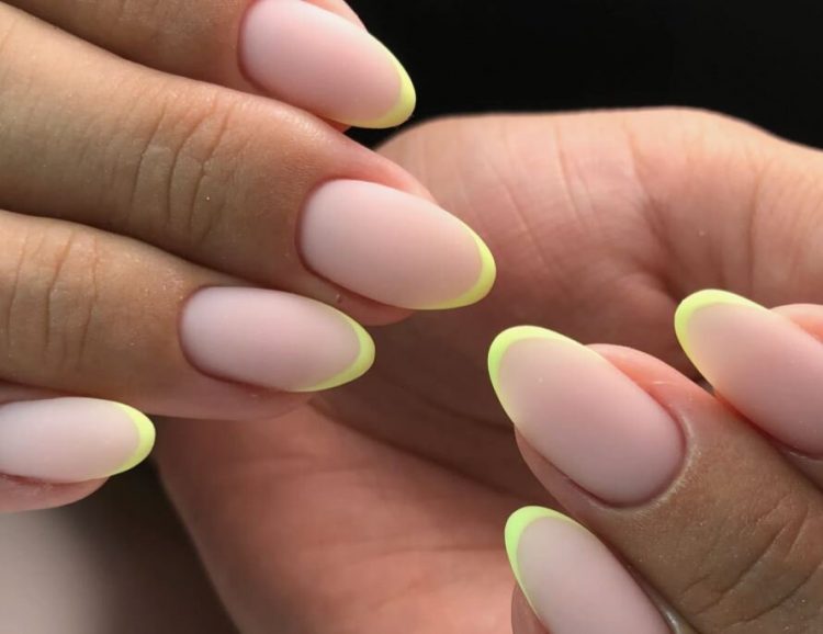 В якості підкладки використовується натуральна бежево-рожева гамма, що повторює відтінок нігтьового ложе. Вільний край прикрашають різними відтінками.