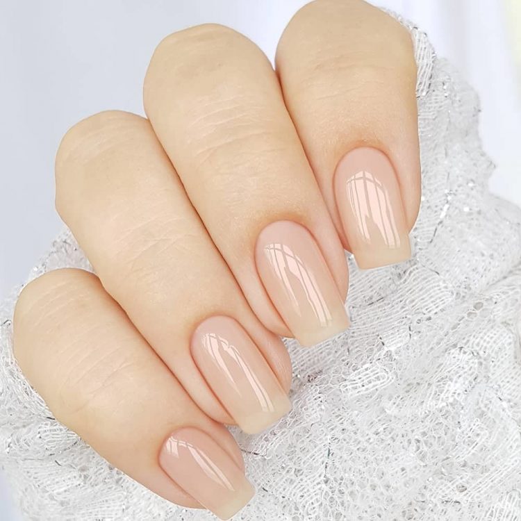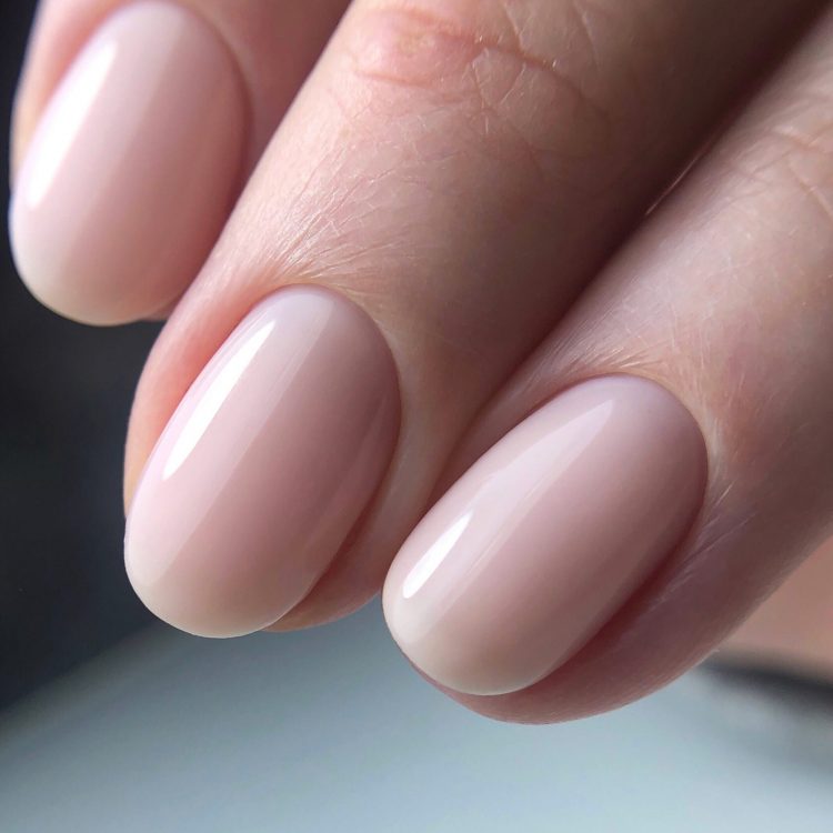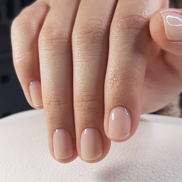 Мінімалістичне покриття, що повторює натуральні нігті, виглядає дуже природно та елегантно. Здається, що на нігтях нічого немає, вони виглядають здоровими, доглянутими та блискучими.