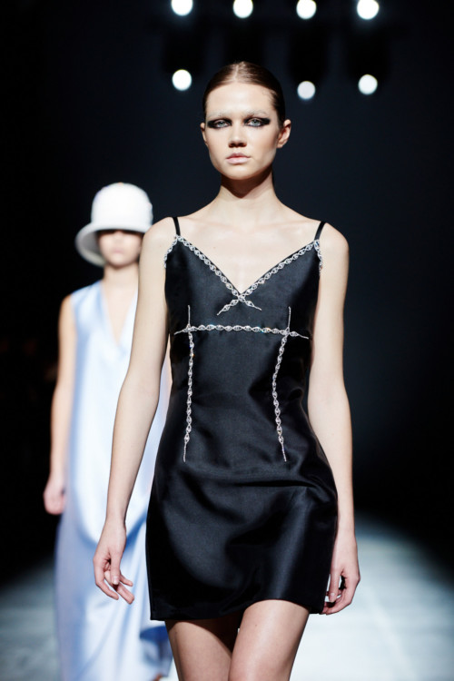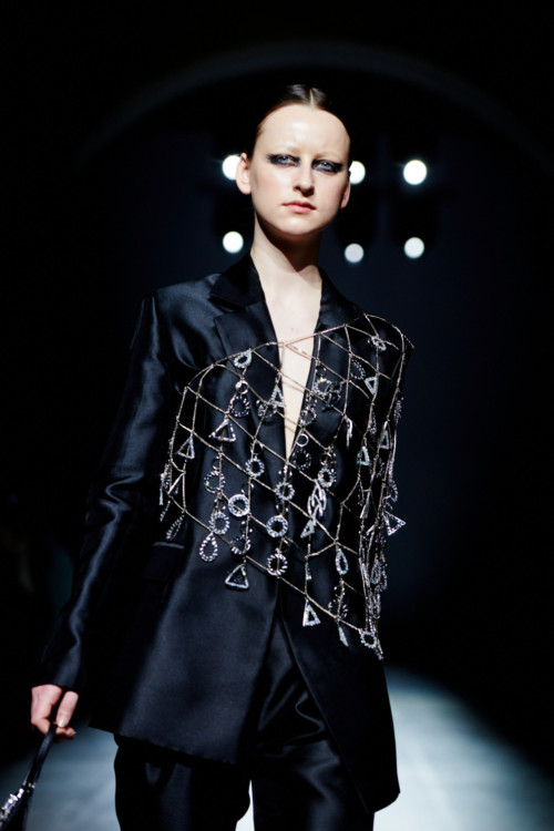 У кращих традиціях бренду, більшість моделей вручну інкрустовані елементами з каменів. Деталі з кристалів прикрашають сукні, жакети, капелюхи і боді.