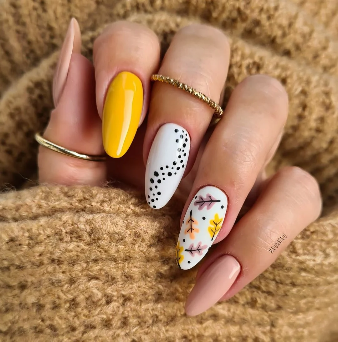 Звичайно ж, найактуальнішою в ці дні залишається осіння тематика – листя різного кольору, краплі дощу, парасолі, горобина і флористичні мотиви. Не можна не здивуватися фантазії нейл-майстрів, здатних зробити справжній витвір мистецтва.