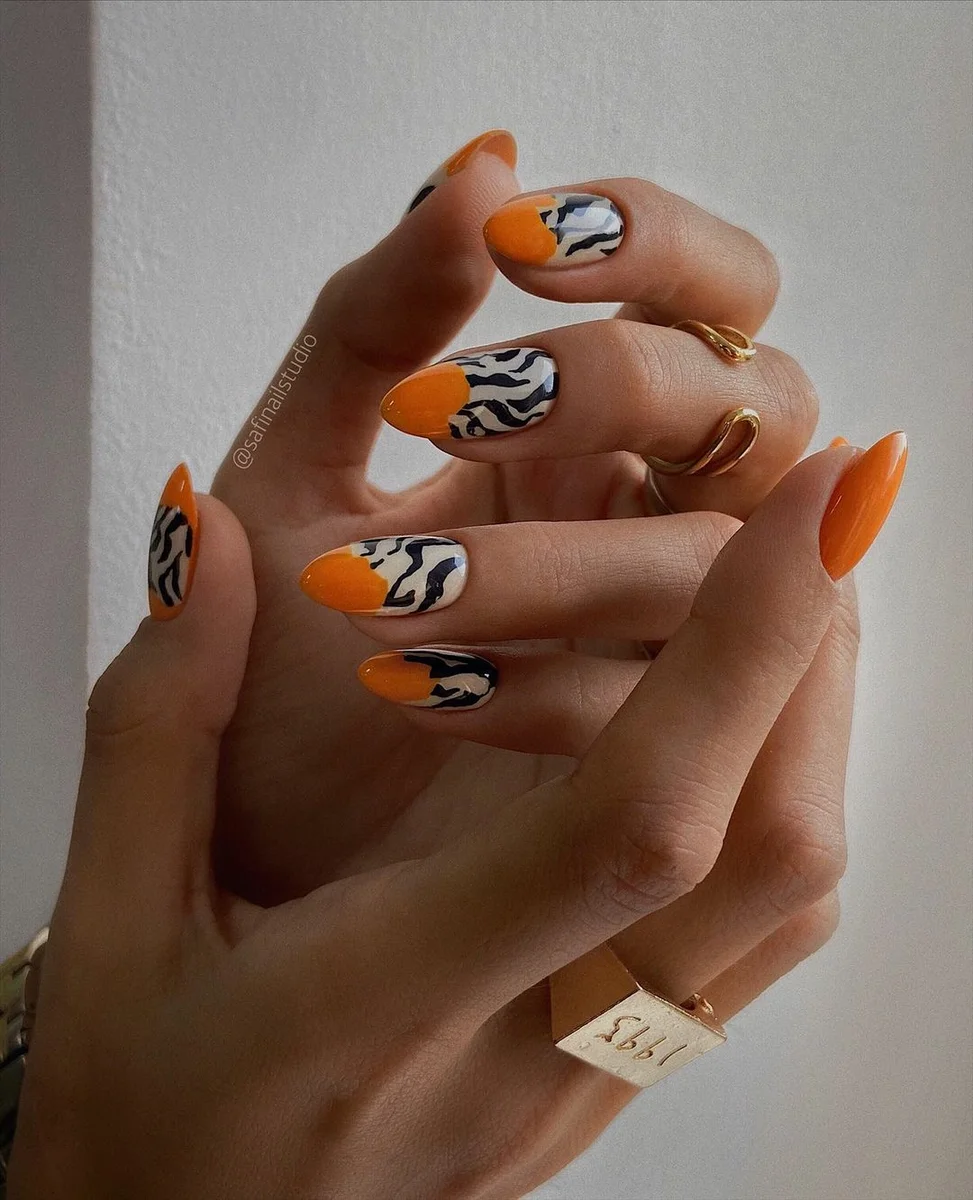 Для тих, хто не любить модний леопард, можна порадити нейл-арт з іншими анімалістичні принтами – тигр, корова, жираф, зебра, пітон.