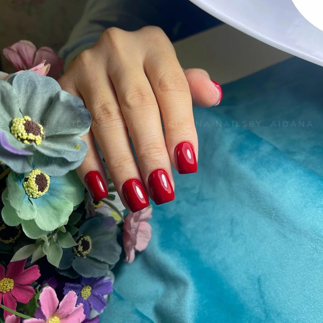 Безумовно, актуальність манікюру в відтінках червоного і бордового кольору восени різко підвищується. Найактуальніший всесезонний варіант – однотонне глянсове покриття.
