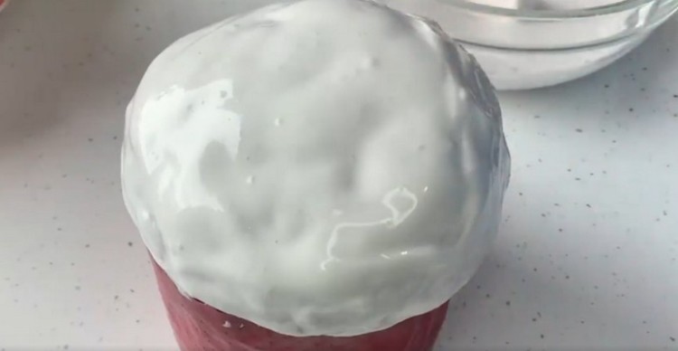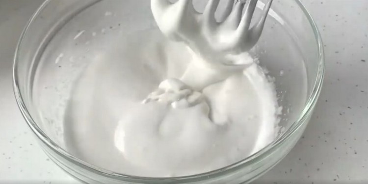 Потім збийте суміш міксером на високих оборотах протягом 2-3 хвилин. У процесі збивання сироп буде ставати білим і пишним, безперервною стрічкою стікати з віничків.