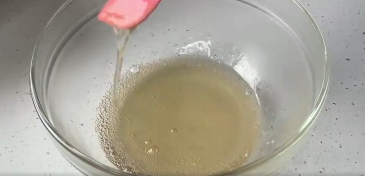 Поставте сотейник на плиту, всипте в нього цукор, влийте воду. Не перемішуючи доведіть сироп до кипіння. Кип’ятити сироп довго не потрібно: через 1-2 хв. зніміть його з вогню. Після цього перелийте в заздалегідь підготовлену чашу і додайте набряклий желатин. Лопаткою все ретельно розмішайте, щоб желатин повністю розчинився.