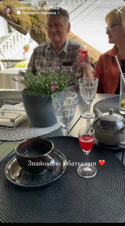 Наразі пара перебуває за кордоном. Саме там відбулось знайомство батьків з її коханим. Подробицями Катерина Лозовицька поділилась в Instagram-stories. Модель показала своїх батьків, які з нетерпінням чекали на зустріч з потенційним зятем. Їхнє знайомство відбулось у Варшаві.