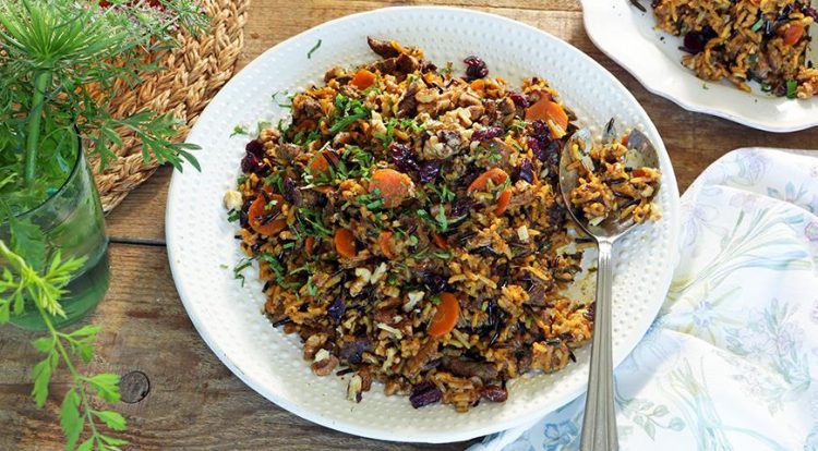 Плов доводимо до кипіння, а потім зменшуємо вогонь. Додаємо горіхи, журавлину та всі необхідні спеції. Страву готуємо ще 20-30 хвилин, а потім знімаємо з вогню. Смачного!