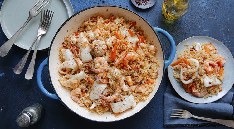 Такий плов Ви ще точно не куштували. Він виходить дуже оригінальним та має чудовий смак. Плов з креветками та кальмарами неодмінно Вам сподобається.
