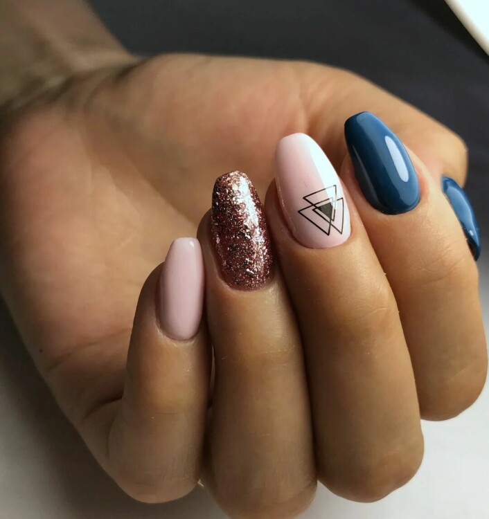Хто не бажає виділятися і придумувати щось нове може виконати на своїх нігтиках геометрію. Вона актуальна завжди. Колірна гамма тут не має значення. Виконати можна просту або складну геометрію. Вона чудово доповнює образ. Взимку практичним вважається манікюр в холодних відтінках в стилі “Котяче око”.