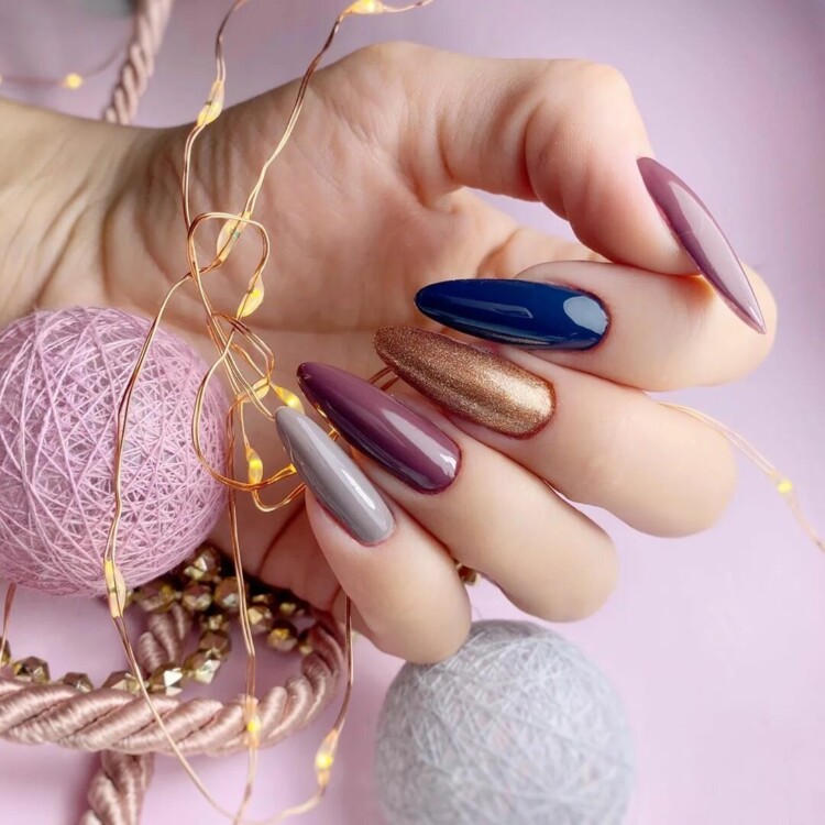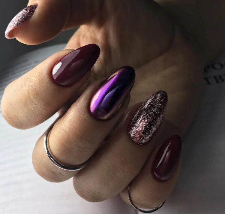 Хто ще й досі не хоче відпускати осінь, може виконати манікюр в будь-якому теплому відтінку із застосуванням художнього розпису. Золота фольга буде завжди доречною на будь-якому базовому покритті. Втирка додасть родзинки манікюру. Залежно від своїх смаків і уподобань будь-яка жінка може вибрати щось своє.