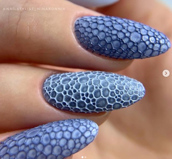 Ми частенько готуємо для вас добірки з різними дизайнами манікюру. Наша недавня знахідка – «пінний» манікюр. Особливо вражаюче покриття з бульбашками виглядає на довгих і нарощених нігтях, тому, якщо найближчим часом хочете походити з «нігтями-кігтями», візьміть дизайн на замітку.
