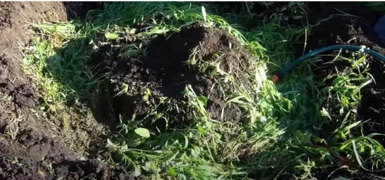 Необхідно викопати круглу яму, укомплектувати її травою свіжоскошеною або бур’янами, полити, покрити землею, розрівняти.