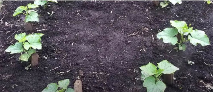 Зробили? Відмінно! Тепер по колу посадіть огірки. Ідеальна відстань між посадками – 40-50 сантиметрів. І обов’язково поруч з кожною посадкою поставте невеликий дерев’яний прямокутник – тримач для розсади.