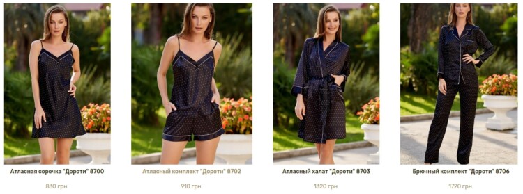 Удобно покупать как одну шелковую пижаму с брюками или шортами, так и в комплекте с сорочкой или халатом из той же коллекции. Например, в интернет магазине Афродита вы не только купите изделия известных итальянских марок по стоимости официального дистрибьютора, но подберете комплект в любой понравившейся комплектации: