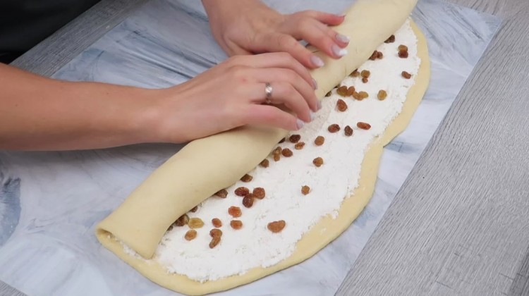 Звертаємо щільний рулет. Добре з’єднуємо краї.