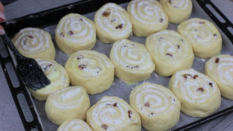 Змащуємо булочки яйцем і відправляємо запікатися в розігріту духовку до 180 С на 25 хвилин.