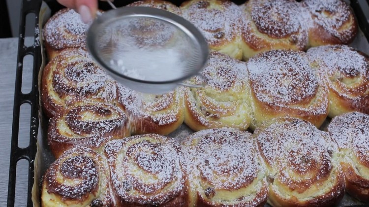 Готові булочки посипаємо цукровою пудрою і кличемо всіх до столу.