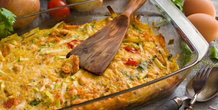 Таку запіканку можна сміливо подавати на сніданок. Вона виходить пишною та апетитною на вигляд. Яєчна запіканка проста у приготуванні й дуже ситна. Страва складається з доступних інгредієнтів, які точно є у Вашому холодильнику.