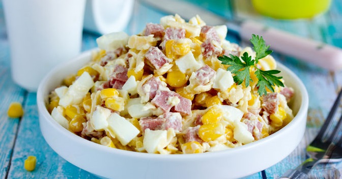 Такий салат складається з дуже простих інгредієнтів, а виходить ситним та смачним. Він готується за лічені хвилини. Салат з ковбасою, сиром та кукурудзою має апетитний вигляд. А ще страва дуже ароматна.