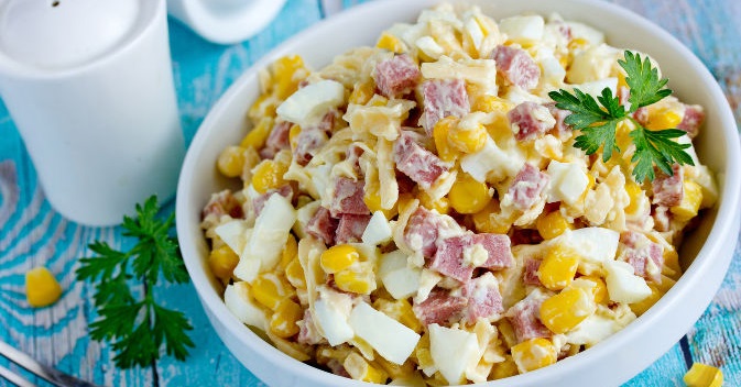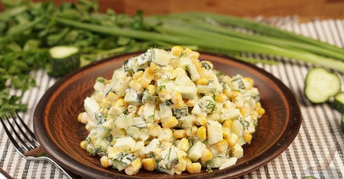 Такий салат дуже простий у приготуванні. Страва складається з небагатьох інгредієнтів. Салат з огірків, кукурудзи та яєць не лише ситний, а й бюджетний. Обов’язково приготуйте його для своєї сім’ї.