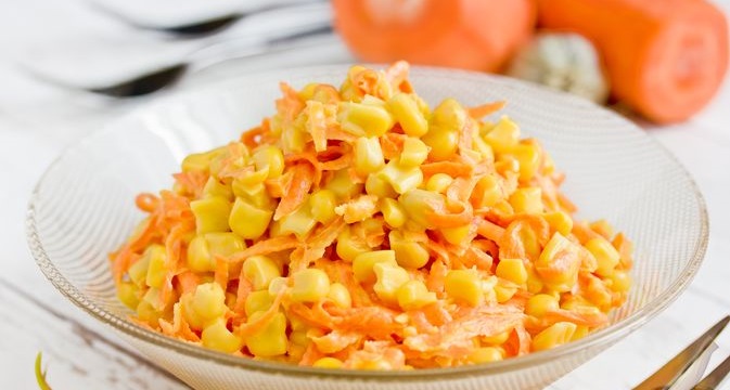 Салат виходить дуже бюджетним та смачним. Він складається з простих інгредієнтів та швидкий у приготуванні. Салат з кукурудзою, морквою та часником неодмінно Вам сподобається.