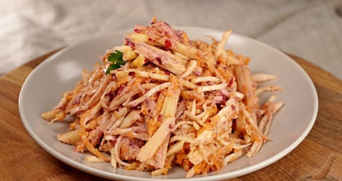 Овочевий салат з яблуками та журавлинно-горіховою заправкою
