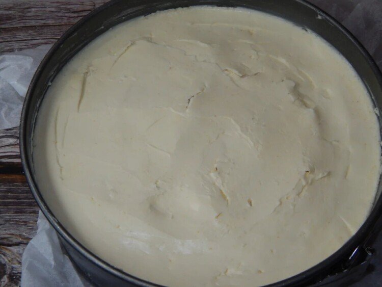 Лопаткою або ложкою рівномірно розподіляємо суміш по формі.