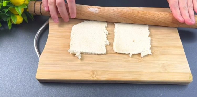 Вирізаємо м’якоть із хліба, залишаючи тільки краї, і прокочуємо її кілька разів качалкою. Вона нам обов’язково знадобиться, але трохи згодом.