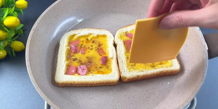 Доведіть до готовності страву та подавайте до столу. Потрібно, щоб м’яка частина хліба також запеклася. Буквально кілька хвилин і сніданок буде готовий!