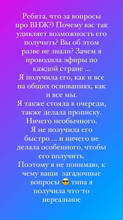 “Я отримала його, як і всі – на загальних підставах. Я також стояла в черзі, так само робила прописку. Нічого незвичайного. Я не отримала його швидко…”
