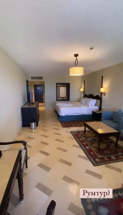 А ще дружина відомого артиста показала вигляд готельного номера, в якому житиме подружжя. Кімната дуже простора та світла. Посередині номера розташоване величезне ліжко. Біля нього стоїть диван та журнальний столик.