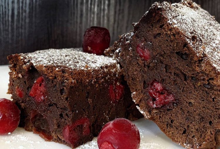 Потім даємо йому охолонути й акуратно дістаємо з форми. Брауні ріжемо на шматочки та посипаємо цукровою пудрою. Смачного!