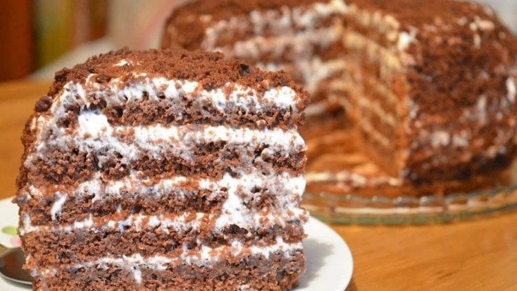 Цей торт виходить дуже смачним. Він складається з ніжної начинки та просто тане в роті. До столу десерт подають з будь-якими гарячими напоями.