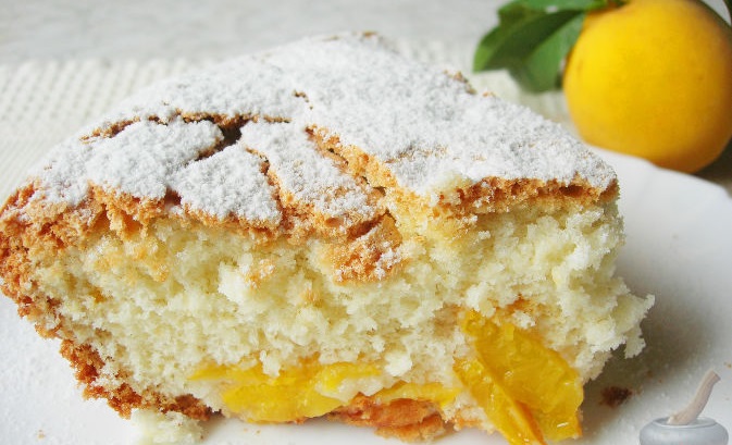 Така шарлотка дуже проста у приготуванні. Вона складається з апетитної начинки та чудово смакує з гарячими напоями. Шарлотка з персиками дуже ароматна й смачна.