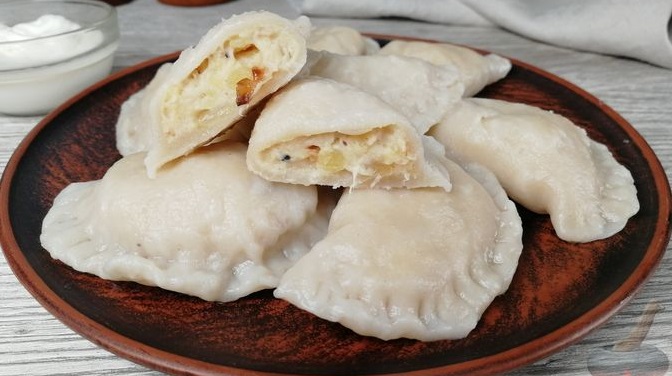 Такі вареники виходять дуже смачними. Вони складаються з ситної й апетитної начинки. Вареники чудово смакують в гарячому вигляді. А ще вони прості у приготуванні.