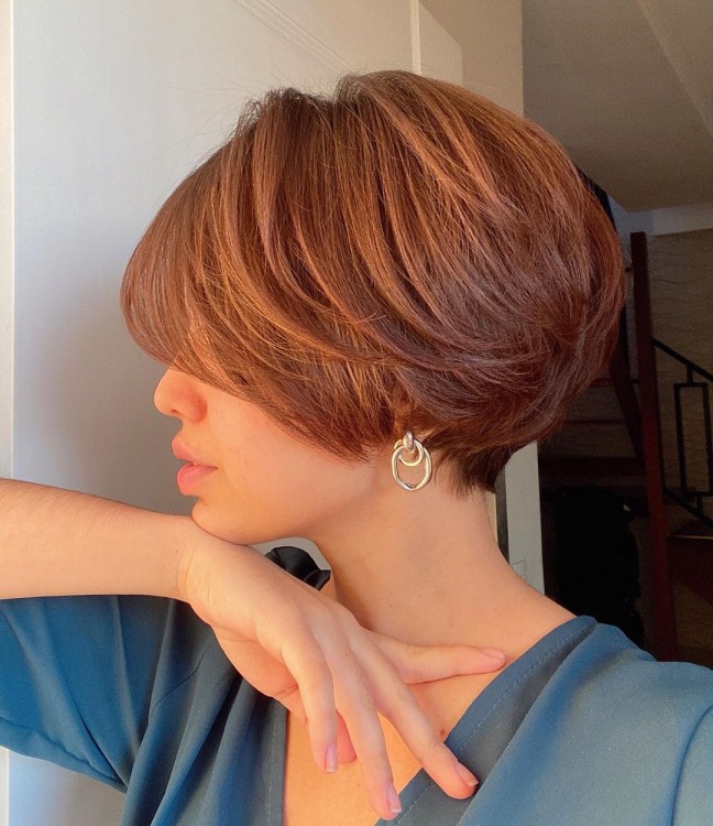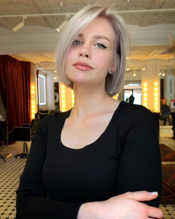 Стильний варіант для яскравих та амбітних леді – це короткий рівний боб. Він має велику кількість плюсів, у тому числі рівний боб ідеально підходить для тонкого волосся. Завдяки сучасній технології стрижки жінка зможе отримати довгоочікуваний об’єм навіть без застосування стайлінгу або складного укладання.