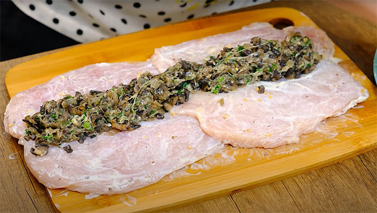 Соковитий завдяки маринаду із сметани курячий рулет із начинкою із грибів готовий!