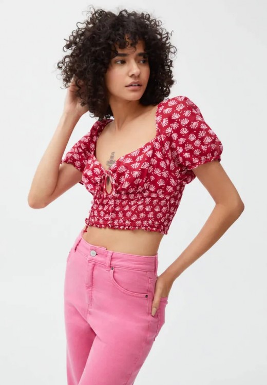 Яскравий червоний топ пропонуємо поєднувати з не менш яскравою спідницею або шортами (наприклад, зеленого або оранжевого кольору).