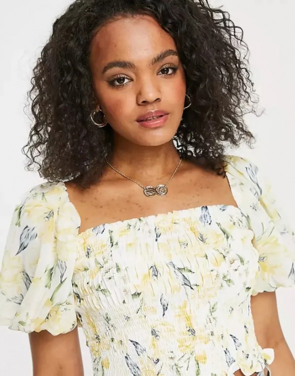 Дуже ніжно і красиво виглядає топ з акварельним квітковим принтом.