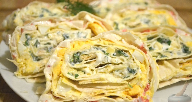 Рулет з крабовими паличками, сиром та яйцями