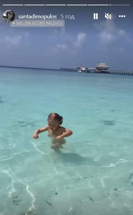 Неподалік видніється величезний океан. Також Санта Дімопулос показала свою донечку, яка купалась в океані. Схоже, що на відпочинок артистка прилетіла з дітьми.